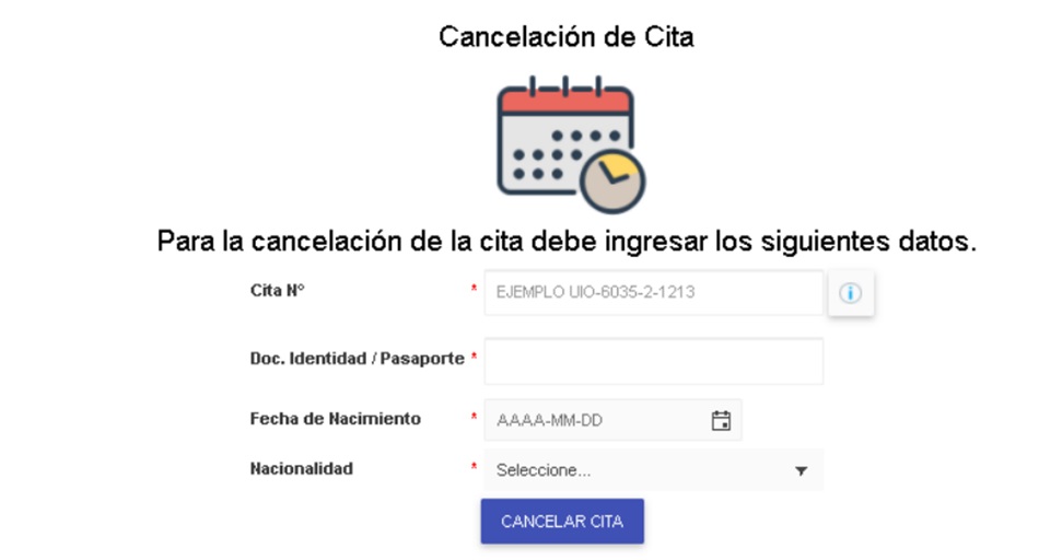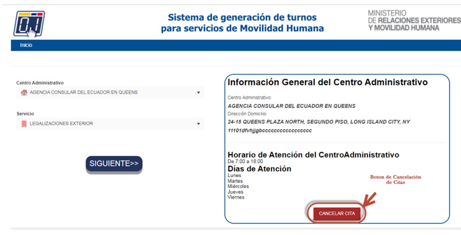Para cancelar una cita en un Consulado Ecuatoriano en Estados Unidos, siga los siguientes pasos cuidadosamente: