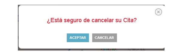 Paso 3: Complete la información requerida y siga las instrucciones. Al finalizar, aparecerá un mensaje de confirmación. Al aceptarlo, se enviará automáticamente un correo electrónico confirmando que su cita ha sido cancelada efectivamente.