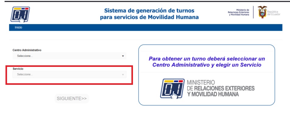 Paso 2: En el sistema, elija el tipo de servicio que necesita, como trámites de pasaporte, cédula de ciudadanía, o visa.