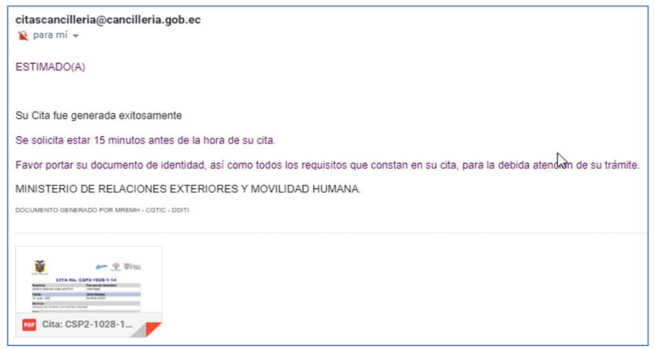 Paso 9: Recibirá un correo electrónico con todos los detalles de su cita, incluyendo fecha, hora y ubicación.